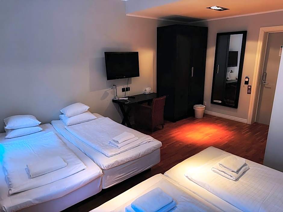 A seating area with a flat-screen TV, a desk and a private bathroom are provided in this quadruple room. The unit offers 4 beds.